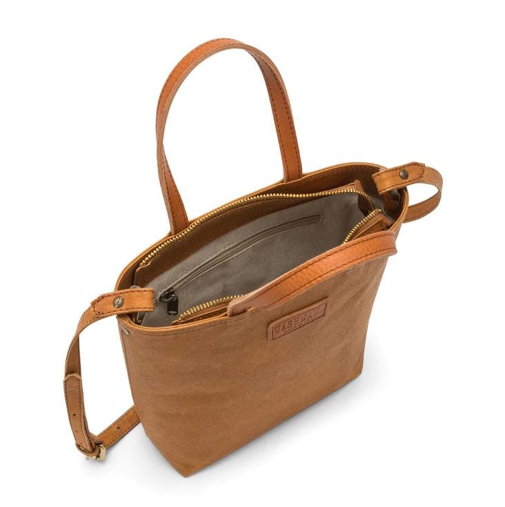 Hergestellt aus waschbarem Papier, die Griffe sind aus Leder und zusätzlich hat sie eine Reissverschlussfach auf der Rückseite.