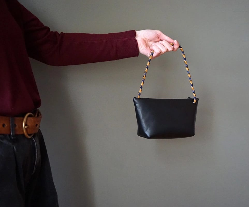 CORD Beutel ist eine minimalistische Ledertasche mit einem Kordelgriff, der gegen einen Schulterriemen ausgetauscht werden kann. Mit der funky Kordel können Sie sie einfach zu Hause oder auf Reisen an einen Haken hängen. Inklusive einer langen Kordel, sodass Sie sie sogar als kleine Tasche verwenden können!